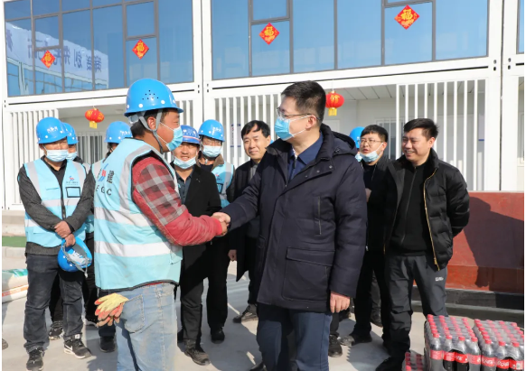 在新春佳節(jié)來臨之際,2月8日至9日,延安市委常委、常務(wù)副市長(zhǎng)劉曉軍、住建局局長(zhǎng)徐步亮、副局長(zhǎng)郭毅等先后到我公司項(xiàng)目慰問堅(jiān)守在施工一線的廣大員工。