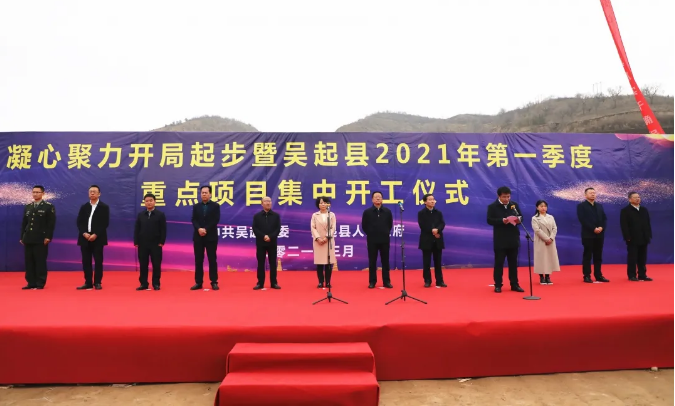 開(kāi)工儀式上,吳起縣委書(shū)記嚴(yán)曉慧作了動(dòng)員講話并宣布吳起縣2021年第一季度重點(diǎn)項(xiàng)目正式開(kāi)工。嚴(yán)書(shū)記在致辭中指出,吳起縣將始終秉承“項(xiàng)目為王,招商第一”的理念,全力營(yíng)造有利于項(xiàng)目建設(shè)的優(yōu)質(zhì)環(huán)境,以高質(zhì)量項(xiàng)目推動(dòng)高質(zhì)量發(fā)展,希望各項(xiàng)目建設(shè)單位倒排工期,掛圖作戰(zhàn),高標(biāo)準(zhǔn)建設(shè),高效率推進(jìn),把每個(gè)項(xiàng)目都建成精品工程。