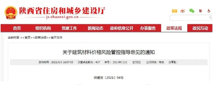 | 建筑材料價(jià)格風(fēng)險(xiǎn)如何管控,陜西省住建廳發(fā)布指導(dǎo)意見 |
