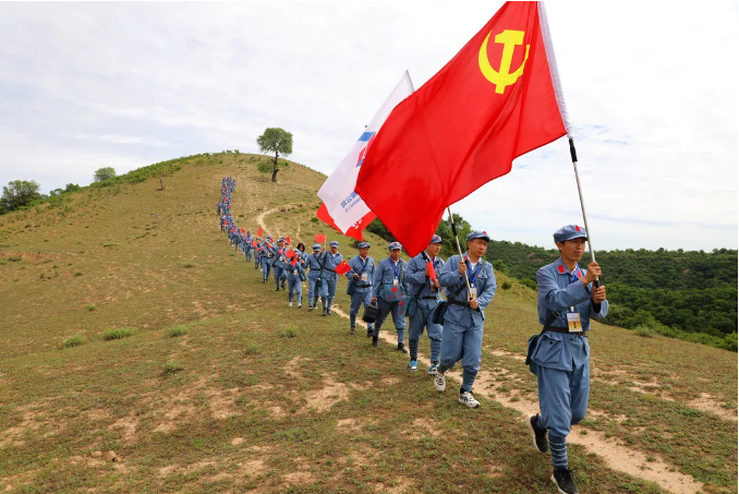 隨后,全體人員從甘泉縣圪嶗村出發(fā),沿著當年紅軍走過的足跡,重走長征路,徒步6.8公里,到達九牛塔段。途中,全體人員學唱了《三大紀律八項注意》紅色歌曲,吟誦了《七律·長征》和《沁園春·雪》,聆聽了紅軍長征光輝事跡,體驗紅軍長征的艱辛,感受紅軍不畏艱險,英勇頑強的革命精神。
