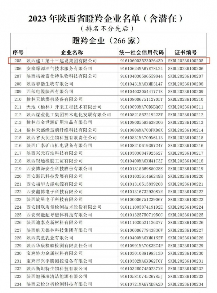 近日,陜西省科學(xué)技術(shù)廳公布了《2023年陜西省瞪羚企業(yè)》名單。陜建十三建集團被評為2023年陜西省瞪羚企業(yè)。