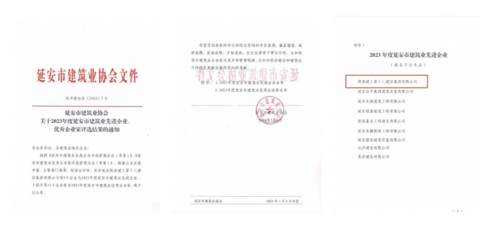 近日,延安市建筑業(yè)協(xié)會公布了2023年度延安市建筑業(yè)先進企業(yè)、優(yōu)秀企業(yè)家評選結(jié)果,陜西建工第十三建設(shè)集團有限公司被評為2023年度延安市建筑業(yè)先進企業(yè);集團總工程師、新型建材公司黨支部書記、董事長王弘起被評為優(yōu)秀企業(yè)家。