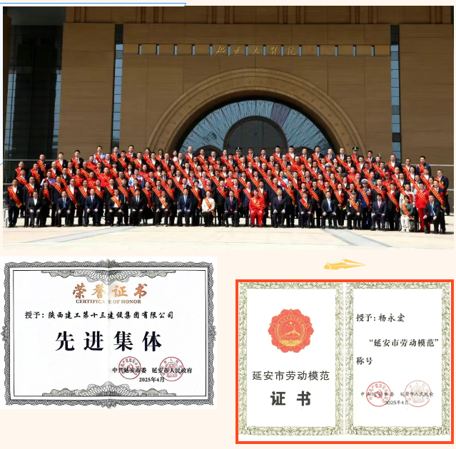 4月29日,延安市舉行勞動模范、先進工作者和先進集體表彰大會,陜建十三建集團獲評延安市先進集體,集團黨委副書記、總經(jīng)理楊永宏獲評延安市勞動模范。