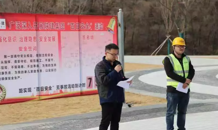 儀式上,陜建集團南泥灣紅色文化小鎮(zhèn)建設項目常務副經(jīng)理屈曉東安排部署2019年重點安全注意事項,并貫穿落實集團公司“百日安全”活動的宗旨。會上各參建單位公司經(jīng)理、項目經(jīng)理積極講述“百日安全”活動的重要性。開發(fā)公司工程管理部長白彥明并發(fā)表講話。
